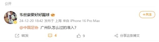 有內(nèi)情?韋世豪質(zhì)問中國足協(xié):廣州隊怎么過的準入? ???